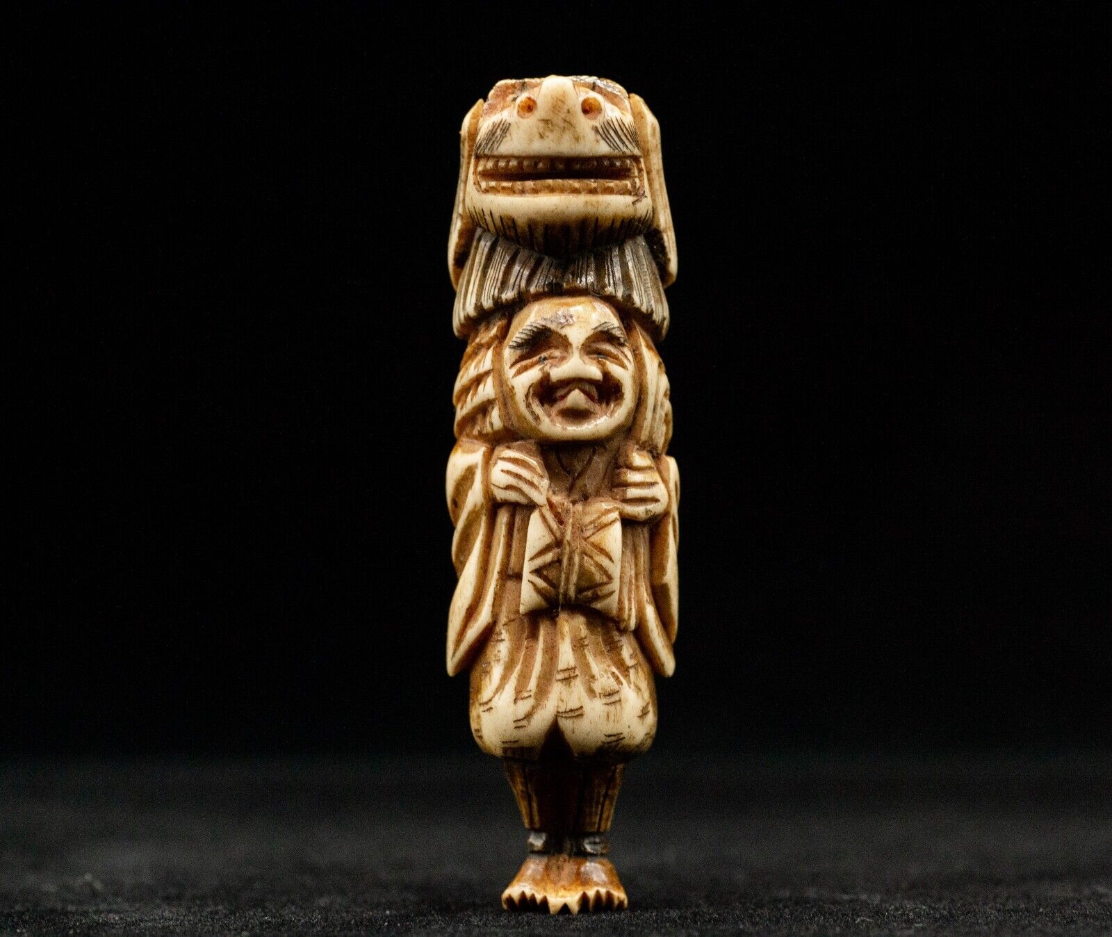 A Good Model of a Man carrying Shishi Material: Stag Antler Age : Edo - Meiji Size(Approx.): 68mm * 19mm * 21mm Weight: 20g(0.7oz)