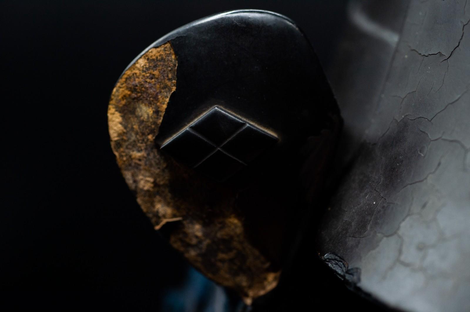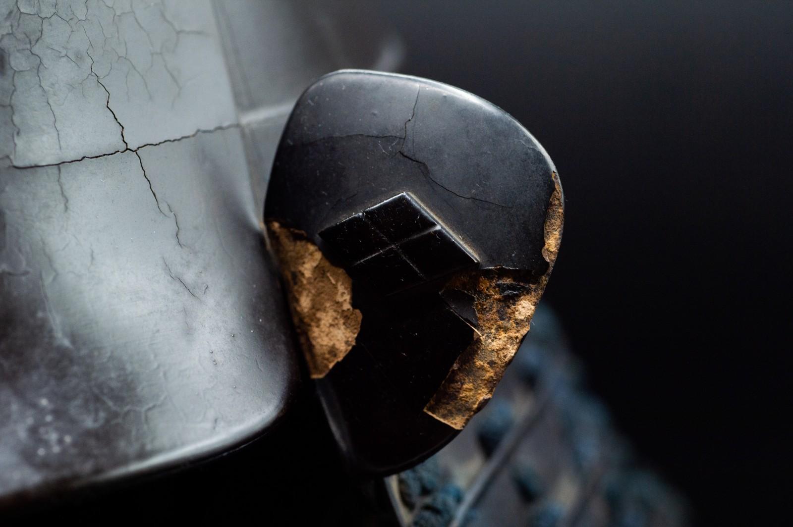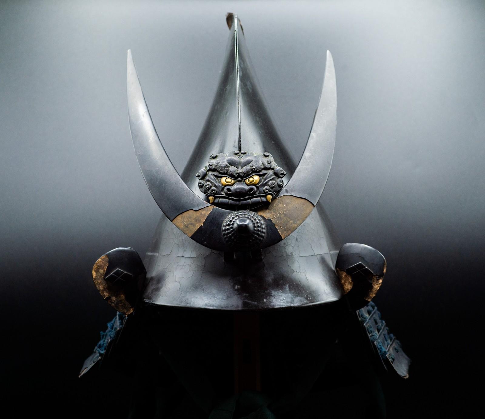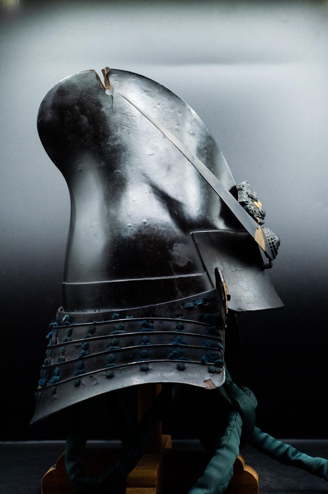 This is a Very RARE Kabuto that has a big Sword Wound.