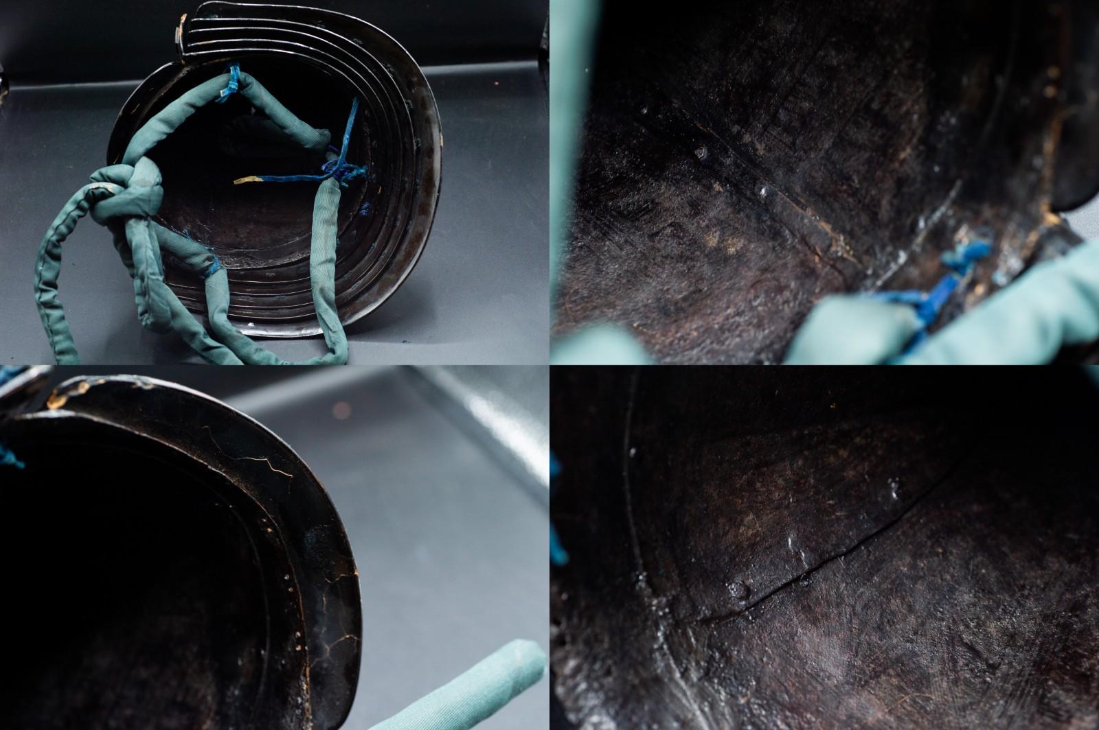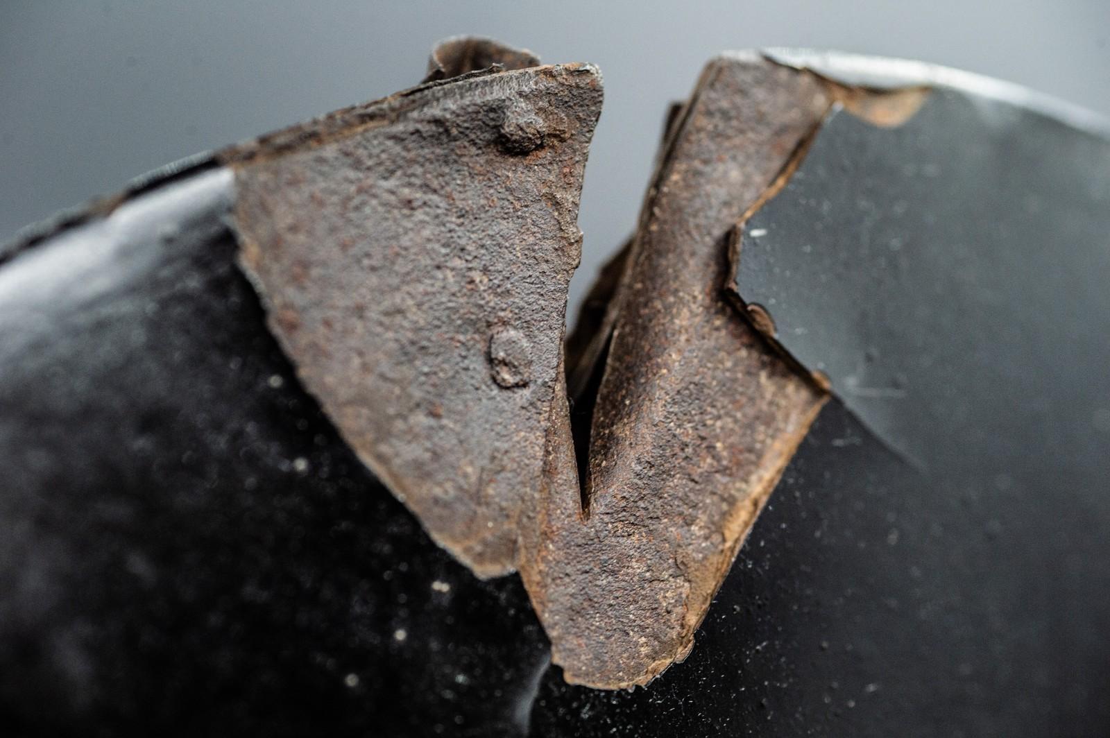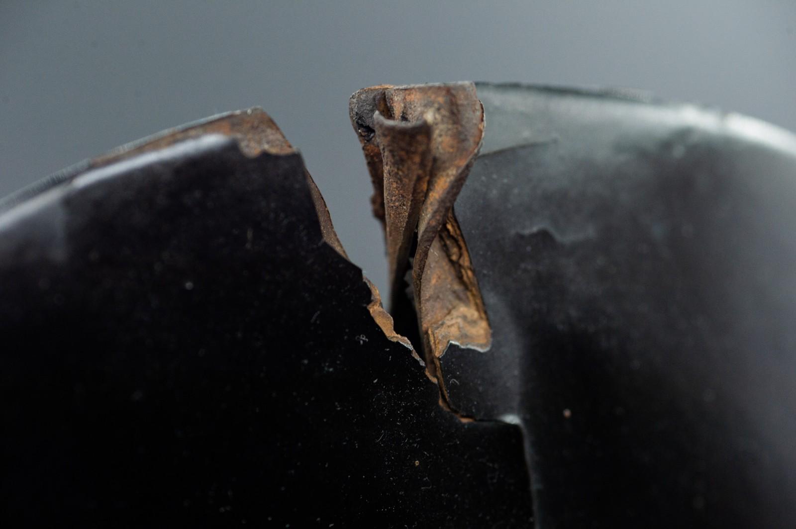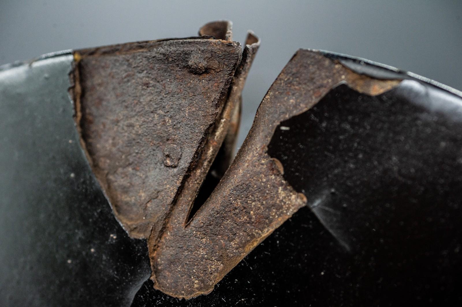 Super Rare Genuine Antique Samurai Helmet with SWORD WOUND KABUTO Edo Period F/S